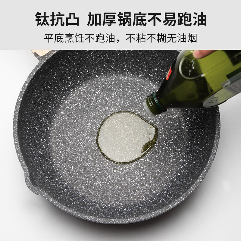 韩国麦饭石不粘锅炒锅家用电磁炉燃气灶通用炒菜平底不沾锅麦石锅