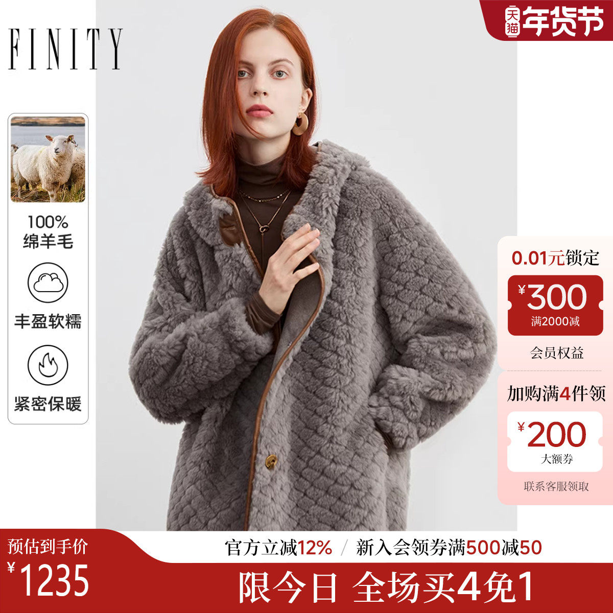 FINITY纯羊毛皮草外套2025冬季新款连帽休闲减龄气质爆款厚外套女