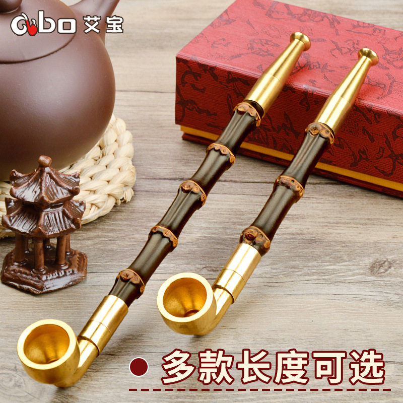 烟斗黄铜旱烟袋锅子老式手工紫竹烟杆黄铜烟嘴传统男士配件