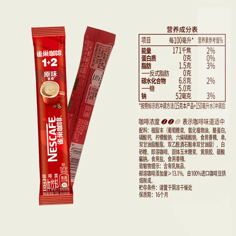 雀巢咖啡1+2醇香原味意式散装正品三合一低糖速溶咖啡粉熬夜提神