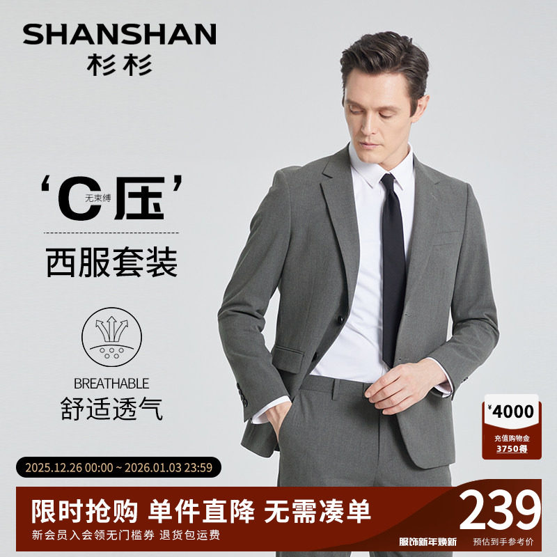 SHANSHAN杉杉官方休闲西服2025秋季新款男套装商务正装西服套装男