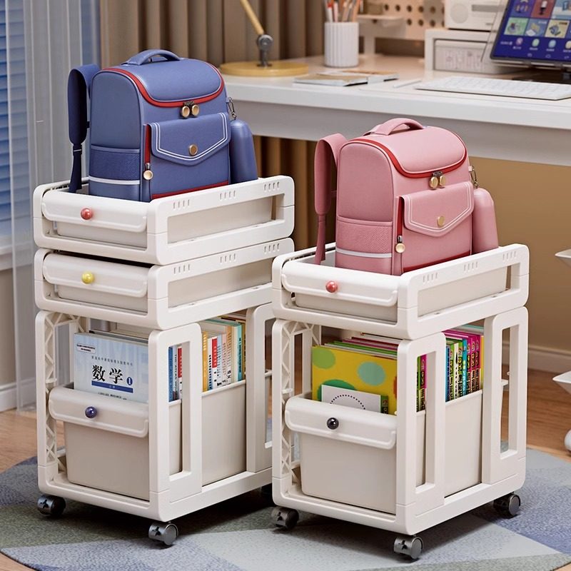 书包置物架可移动家用多层小推车落地桌底下带轮放书本收纳架神器
