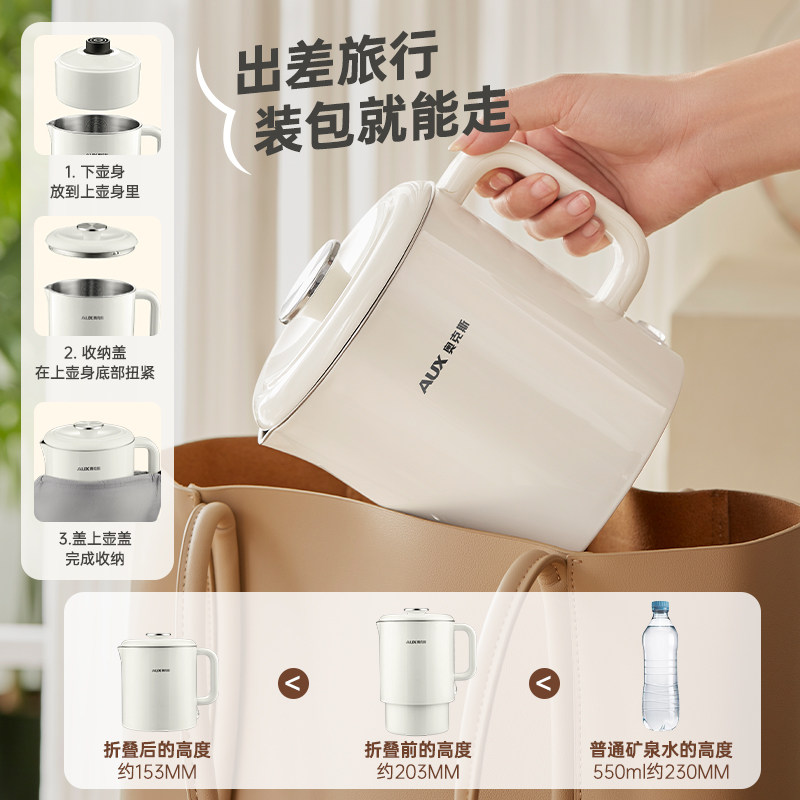 奥克斯便携烧水壶折叠旅行住酒店恒温宿舍不锈钢电热水壶小型新款