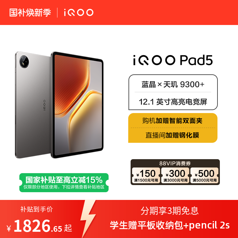 【国补 直播间抢红包】vivo iQOO Pad5平板电脑新款天玑9300+学生开学好物12.1英寸