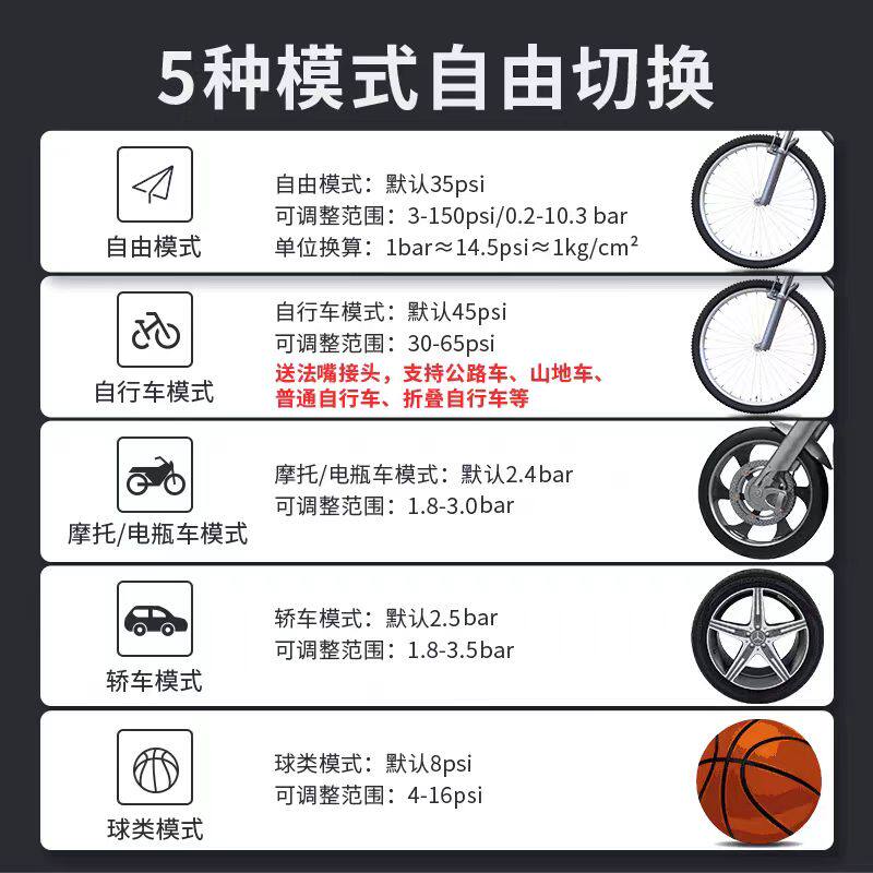 自行车打气筒电动便携快速冲气家用通用公路山地车小型车载充气泵