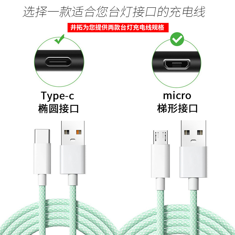 井拓 适用美的台灯充电线扁头安卓typec数据线夹子led床头灯usb电源线充电器灯夹式小台灯学习护眼阅读补光灯