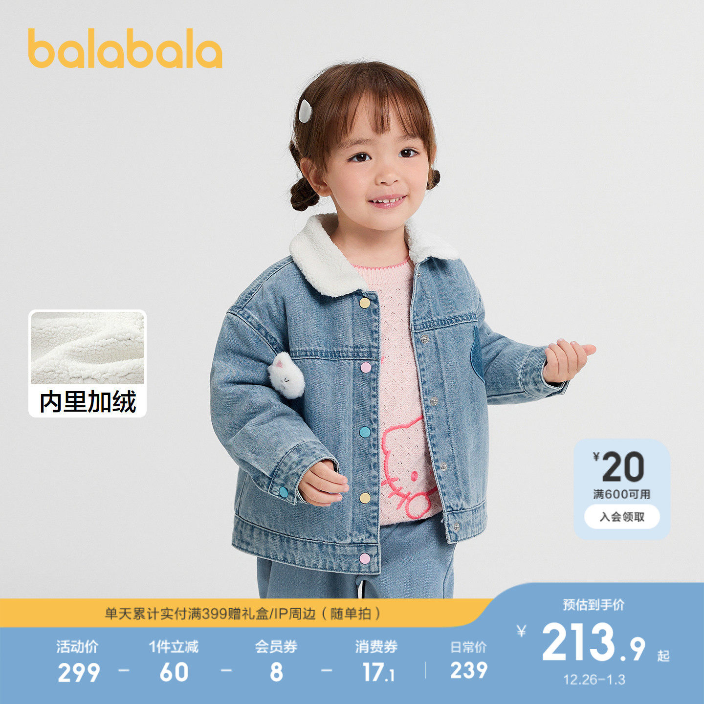 【商场同款】巴拉巴拉童装女童牛仔外套加绒秋冬2025新款毛领上衣