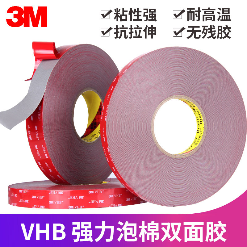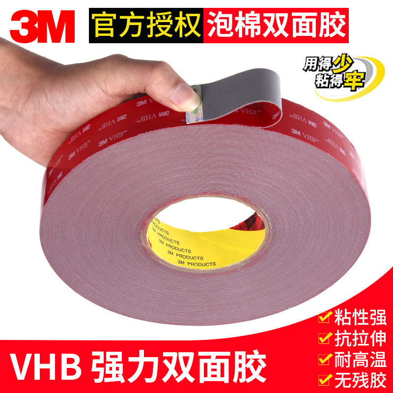 3M双面胶高粘度汽车车窗雨眉装饰海绵胶带胶布尾翼专用贴线槽固定