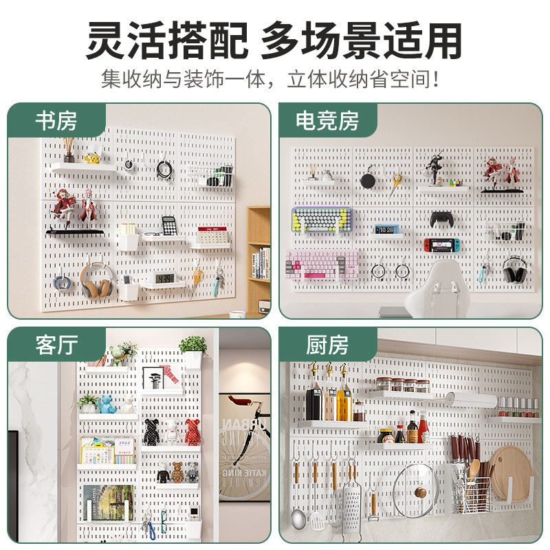 洞洞板配件免钉家用通用壁挂置物架免打孔零件展示装饰挂钩收纳盒
