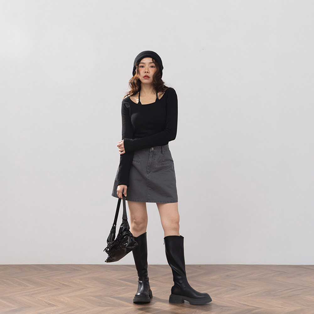 widelia十三行老板娘冬正肩小立领半高领打底衫弹力长袖T恤女9585