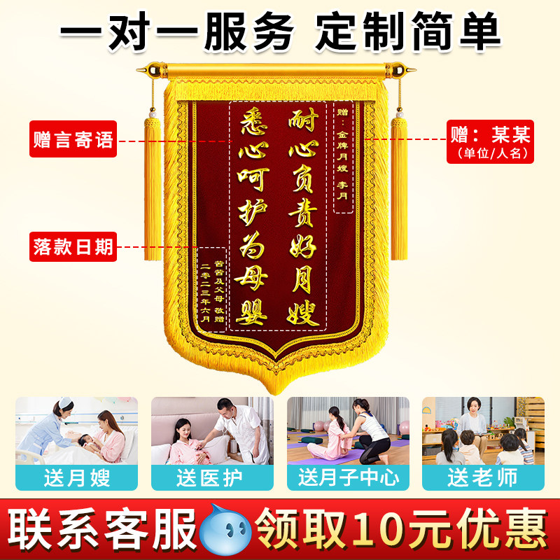 锦旗定做送月嫂月子中心会所订旌旗订做锦旗定制感谢金牌服务康复助产师产后护理育婴师妇产科制作做一面锦旗