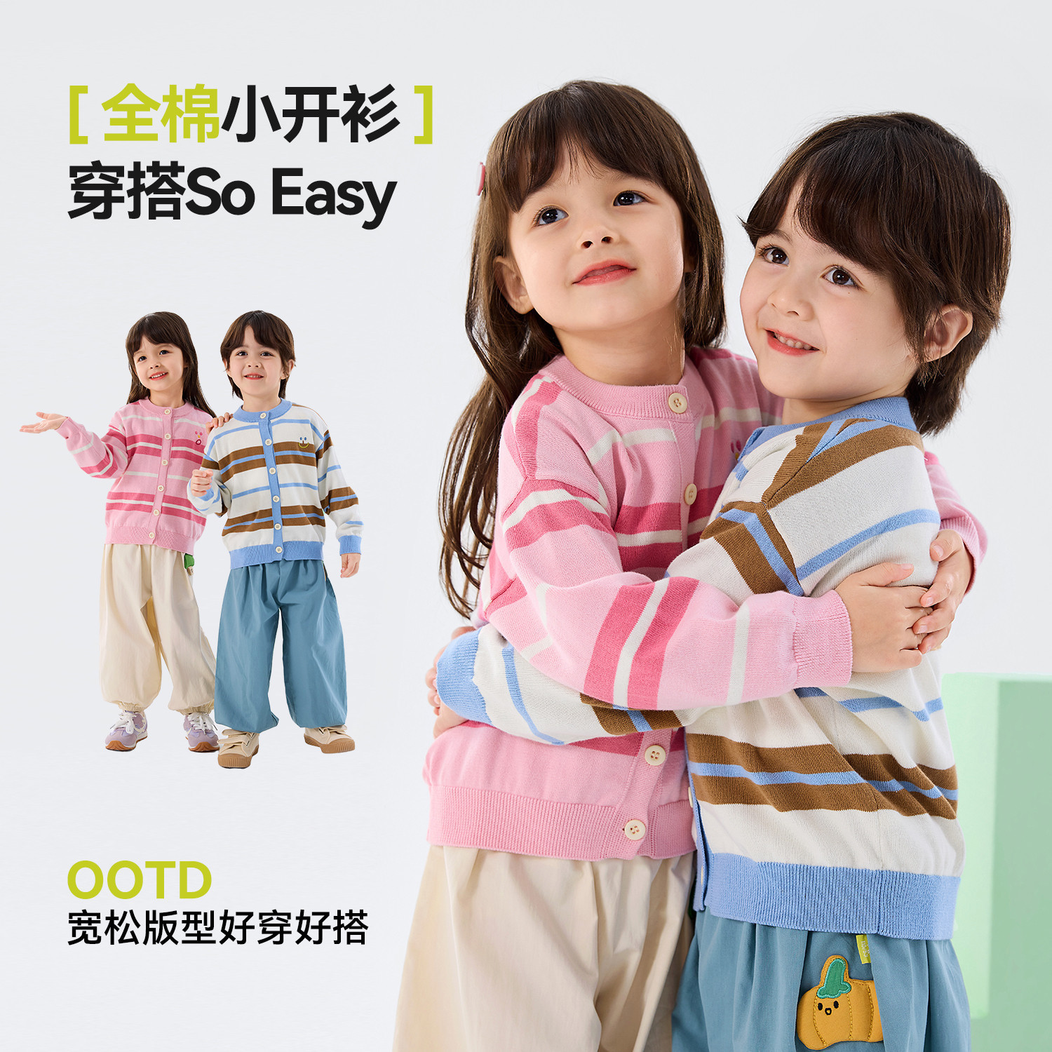 嘟嘟家儿童毛衣春季男童针织衫女童春装条纹开衫宝宝卡通外套上衣