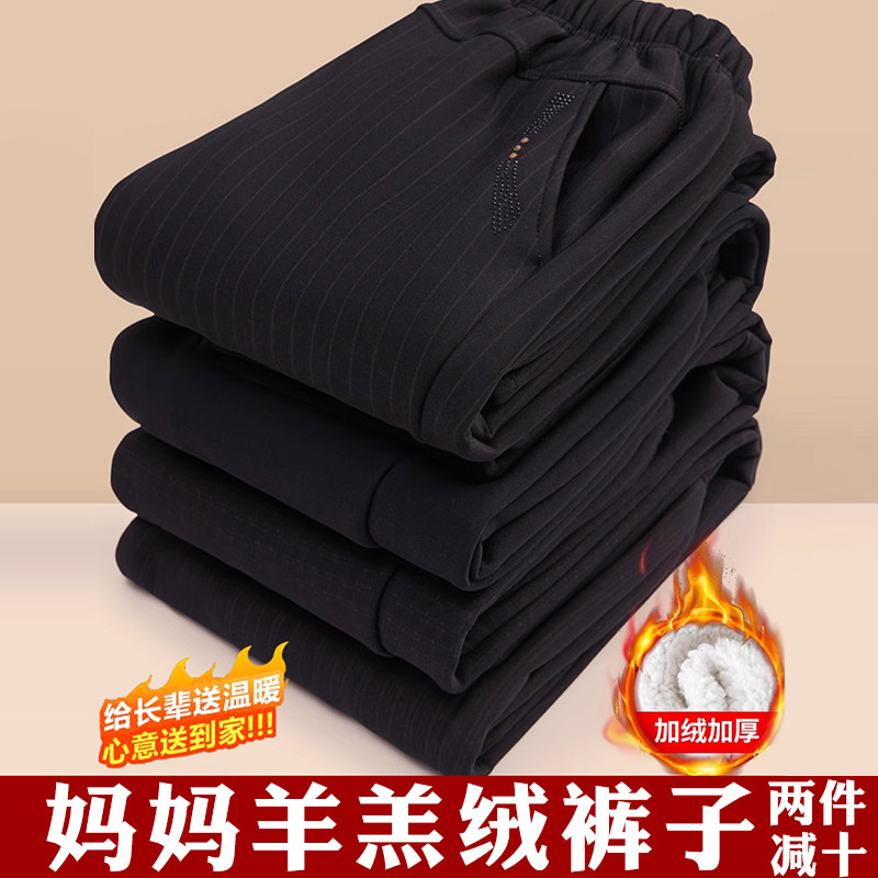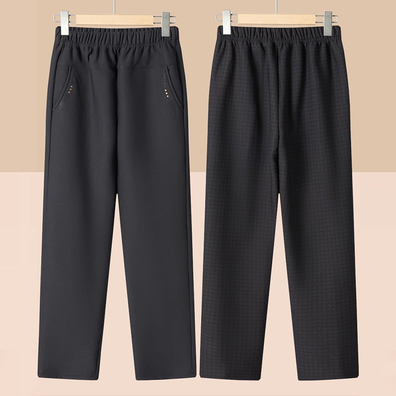 妈妈秋冬季裤子高腰直筒中老年人加绒加厚女裤冬款老太太外穿长裤