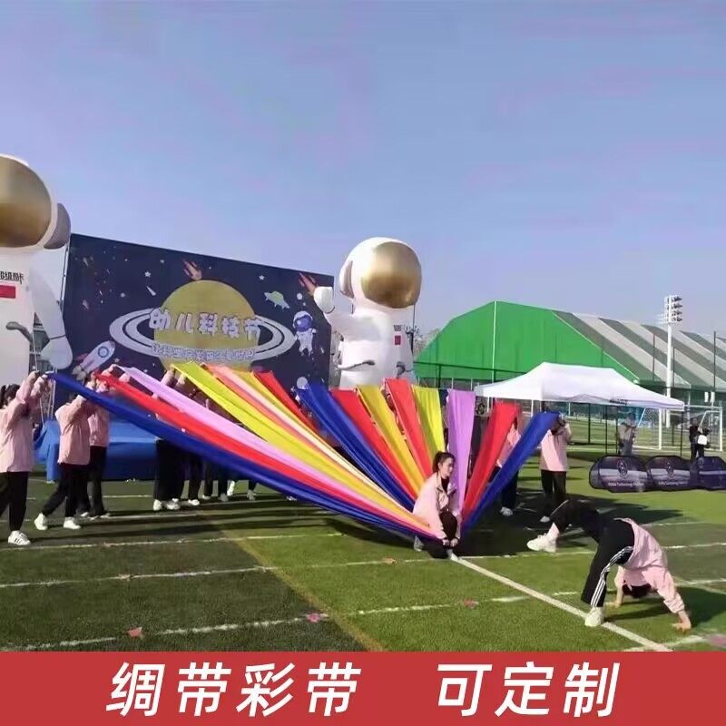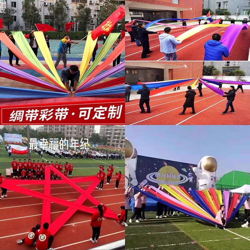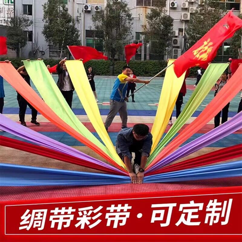 运动会开幕式七色彩绸彩带舞蹈绸布红绸带开场舞创意表演道具绸带