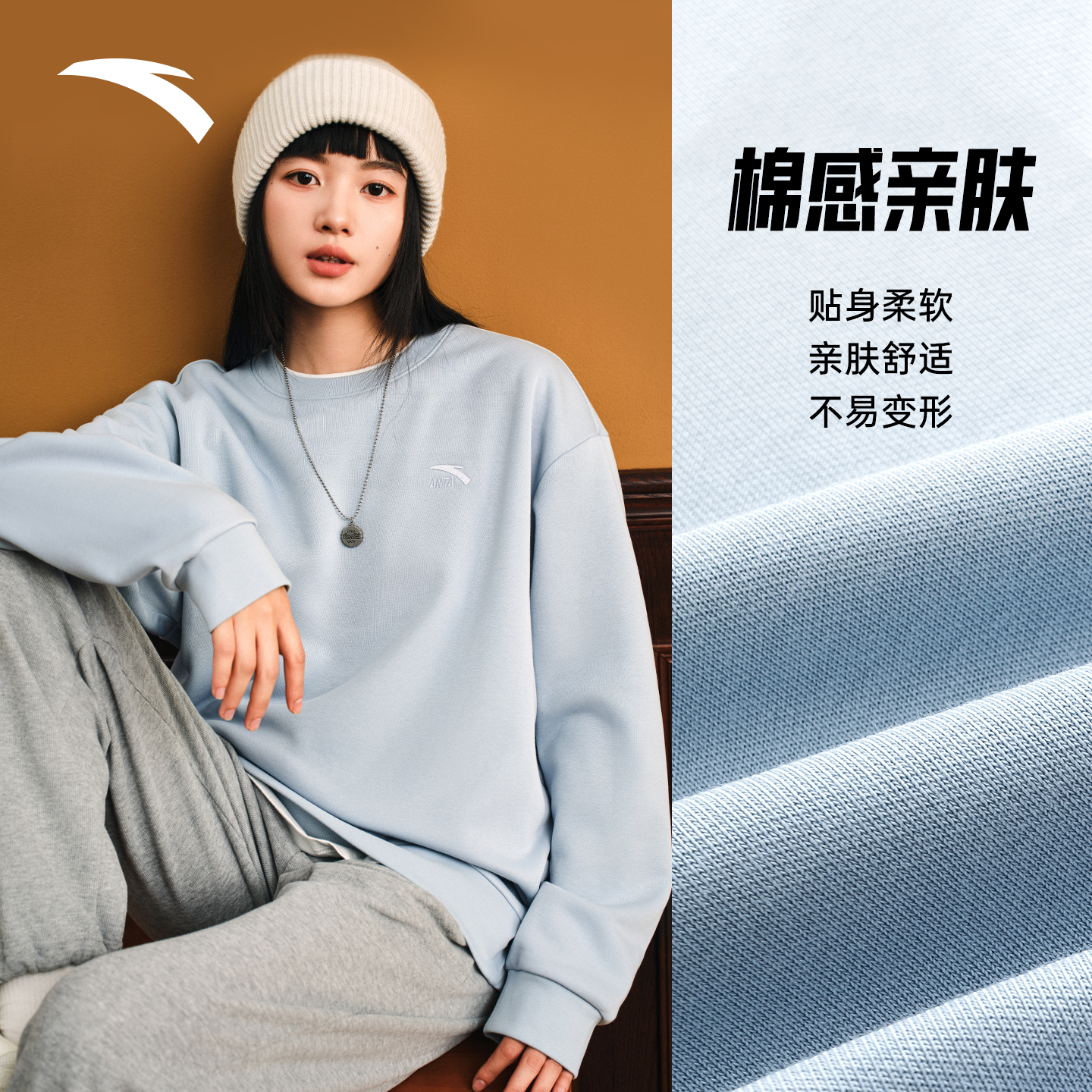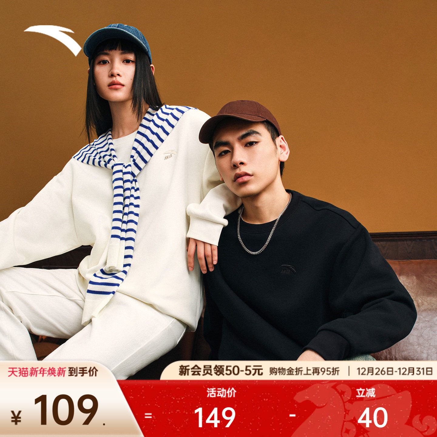安踏休闲长袖卫衣男女同款潮流休闲圆领针织套头衫透气宽松上衣