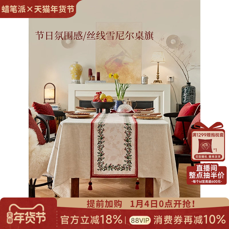 蜡笔派奇遇桌旗红色节日盖布新婚氛围感轻奢斗柜茶几布茶旗加厚布
