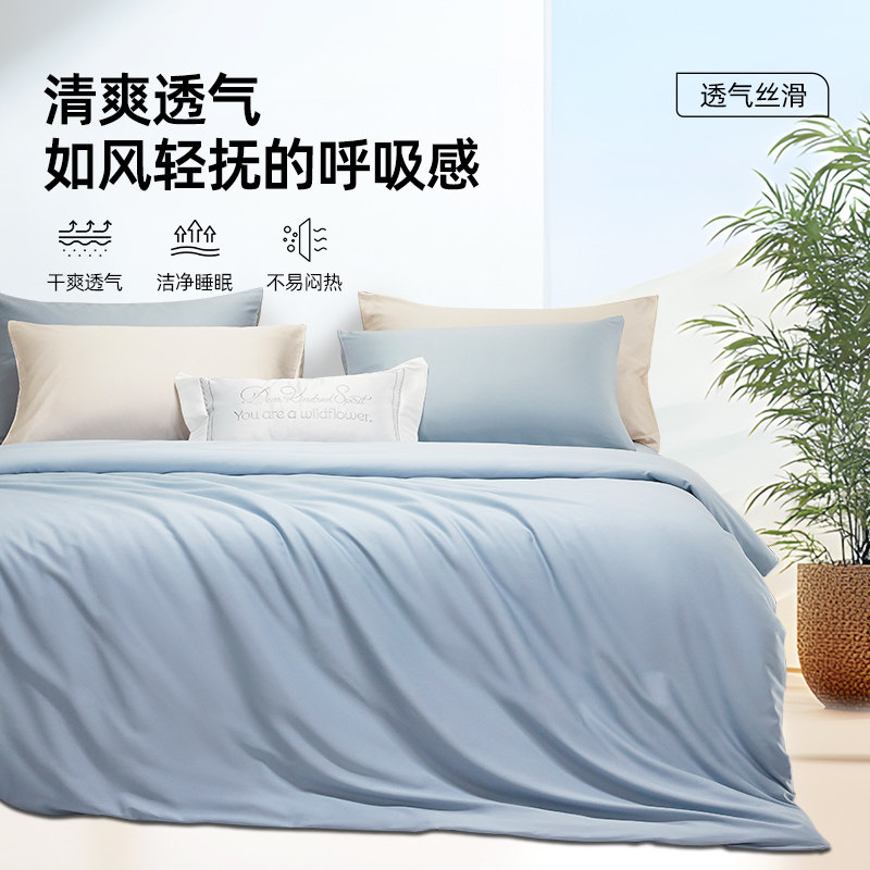 A类水洗棉双层纱四件套被罩非全棉纯棉床单人学生宿舍被套三件套