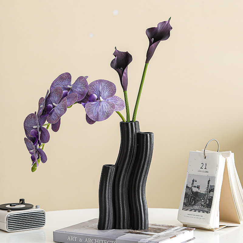 陶瓷花瓶摆件客厅插花高级感玄关电视柜装饰小众卧室红色黑色桌面