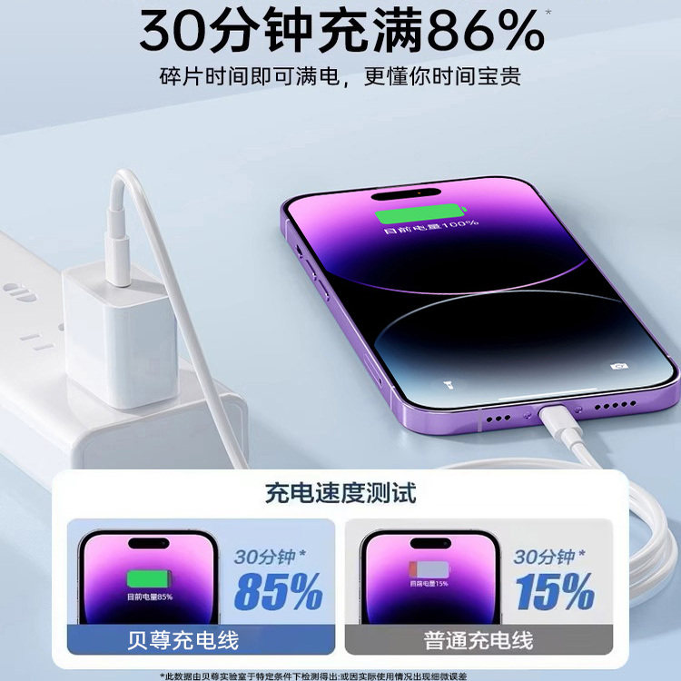 【快充认证】贝尊适用苹果14/13充电器线17Promax数据线20W认证iPhone16正手机单头13品iPad原plus车套装闪充
