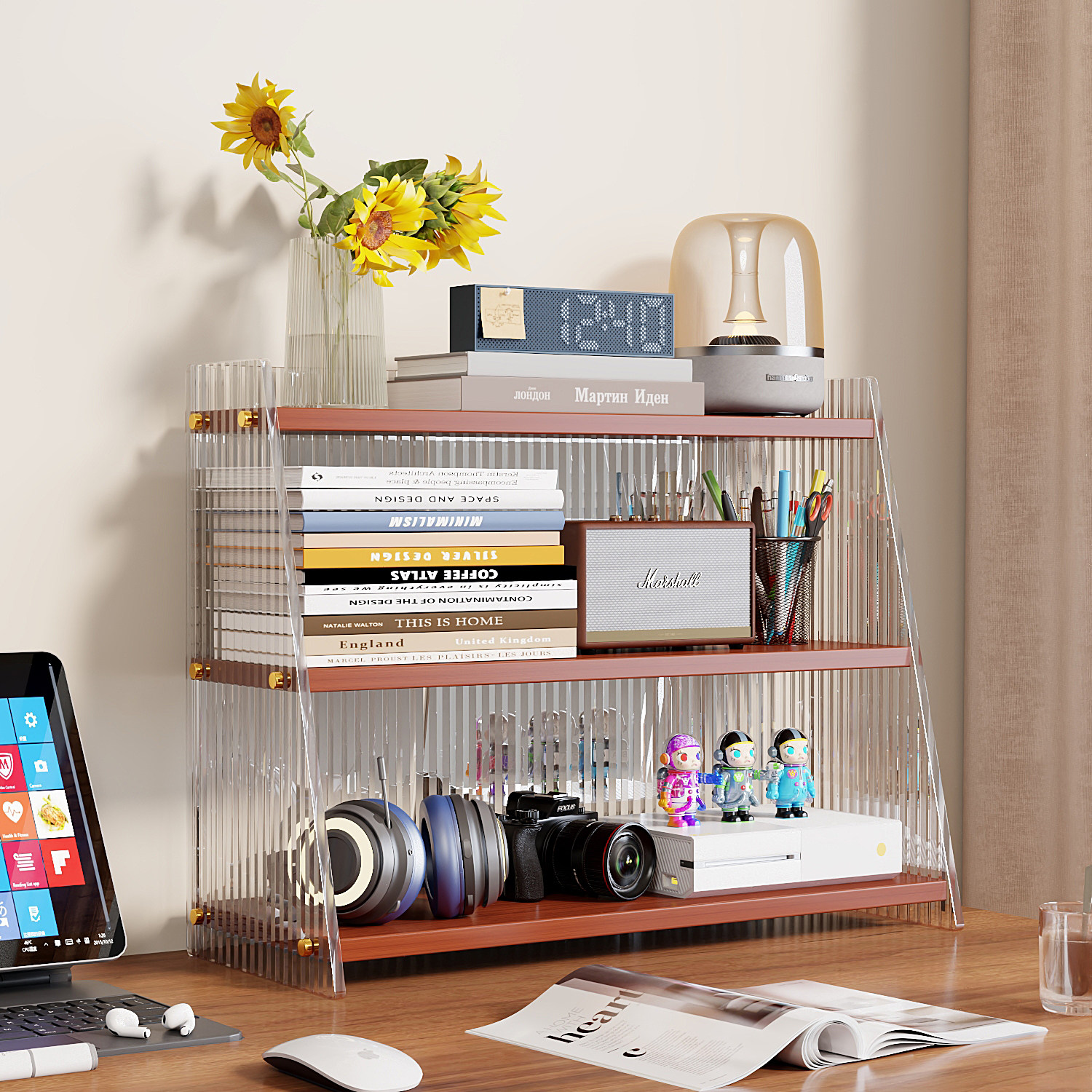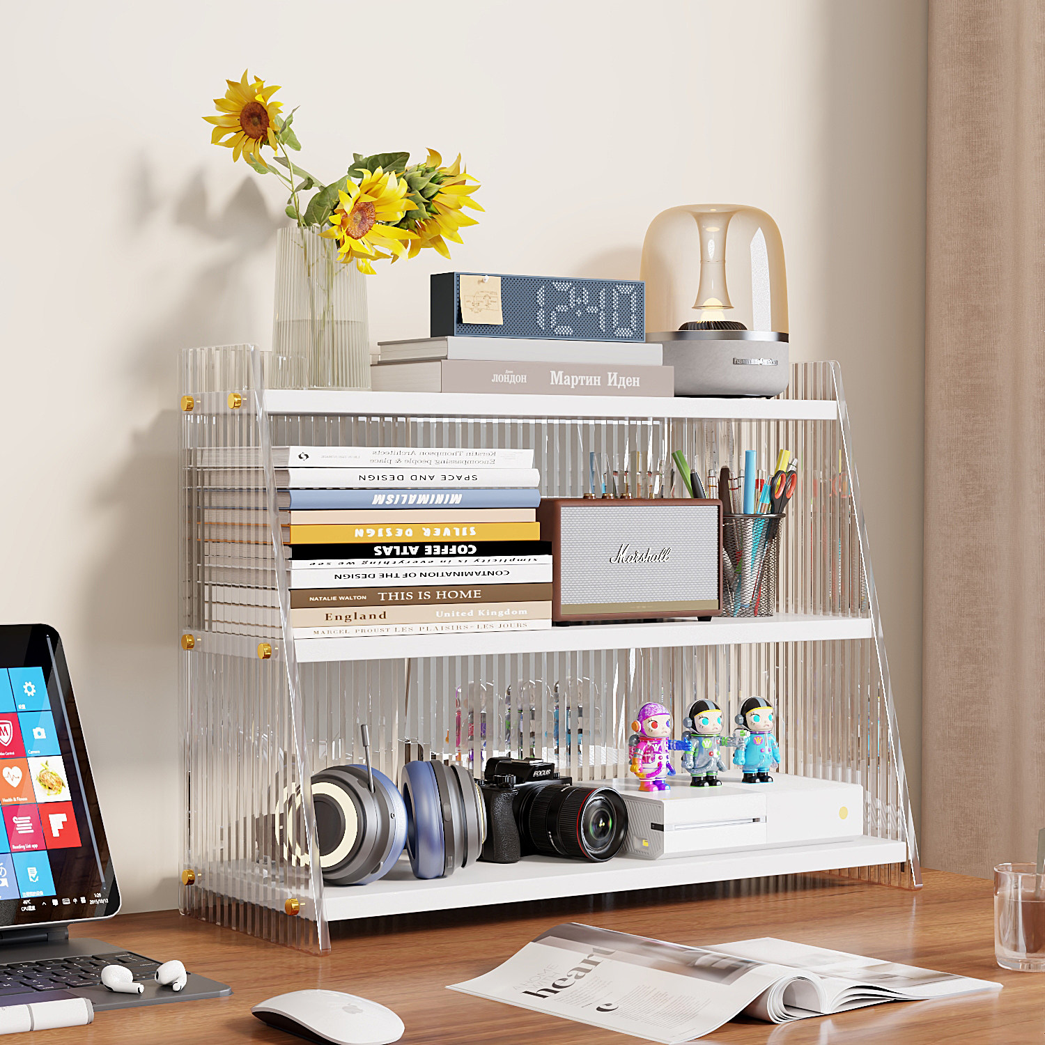 亚克力书架桌面置物架办公桌收纳架宿舍学生用多功能小书柜分层架