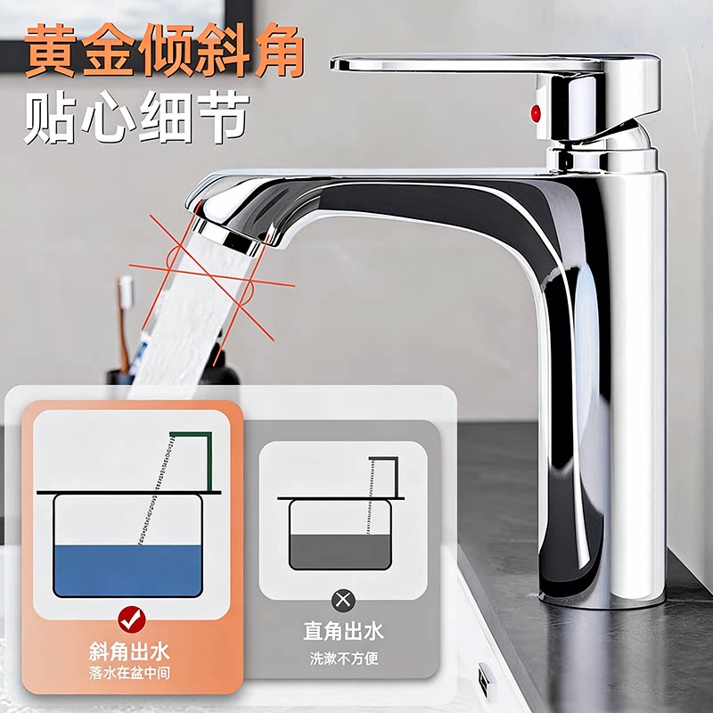 面盆洗脸盆水龙头冷热两用浴室卫生间洗脸池洗漱台洗手盆全铜加长