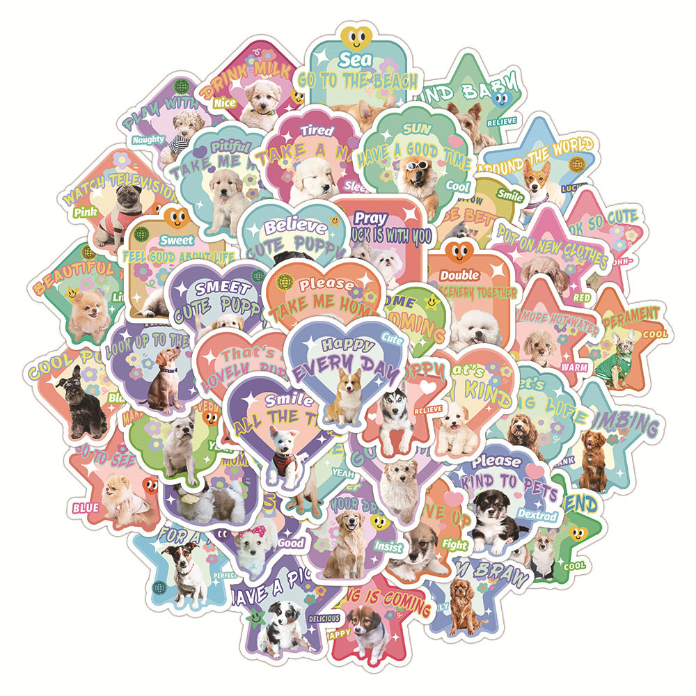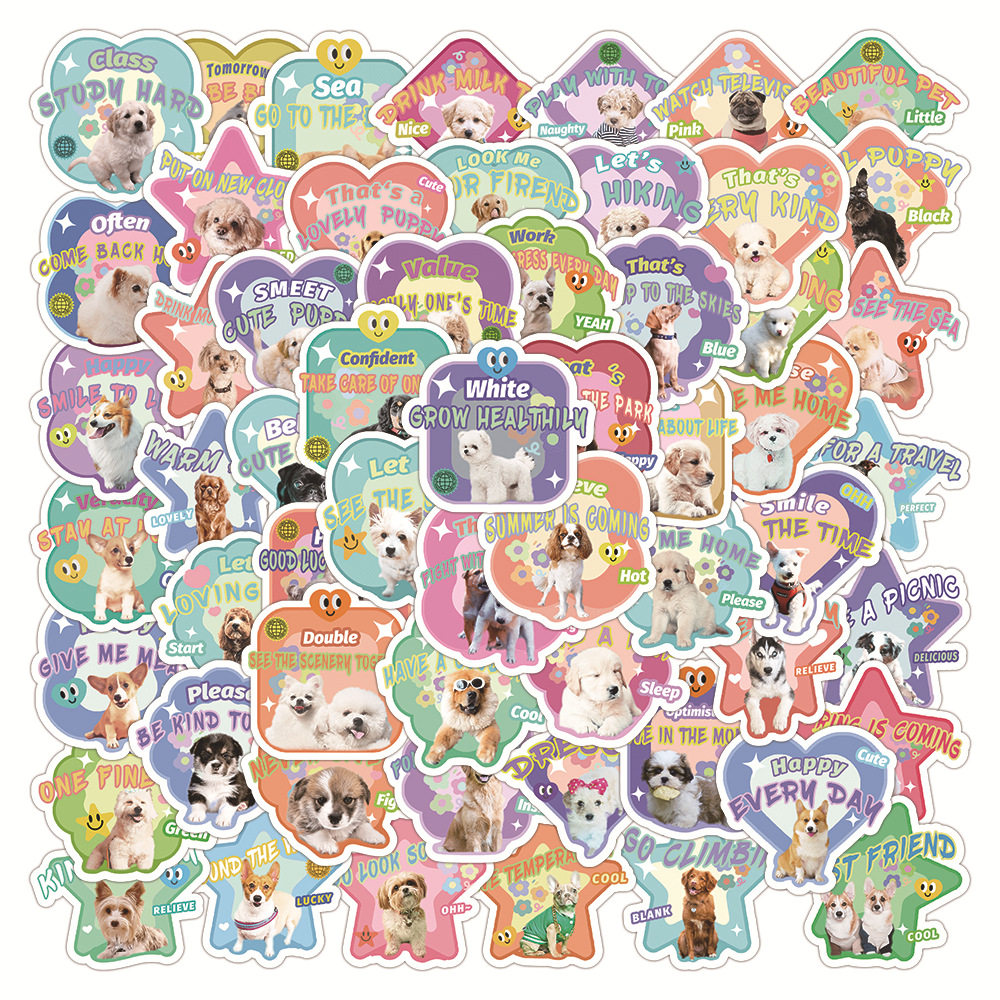 60张原创萌宠小狗表情包贴纸装饰滑板车收纳盒手机壳防水贴画