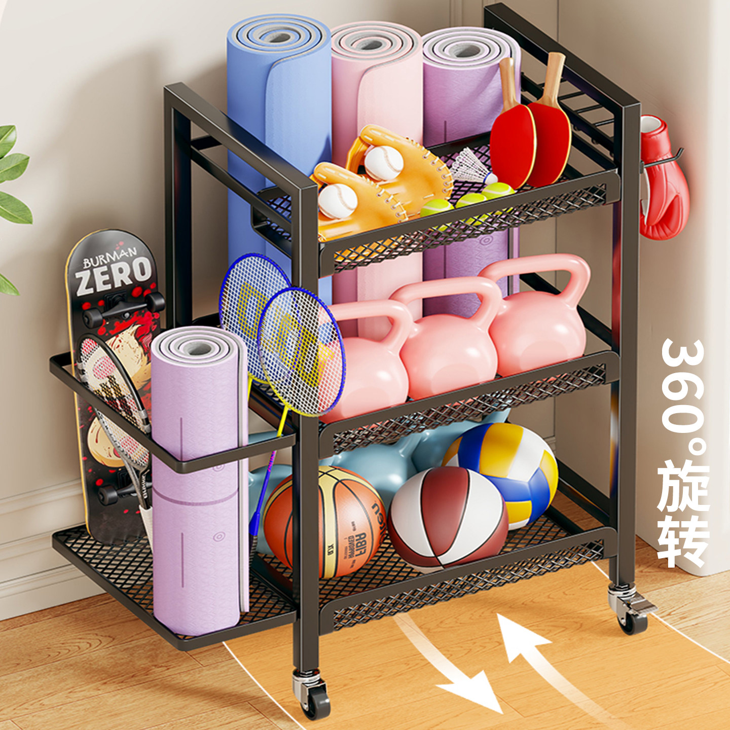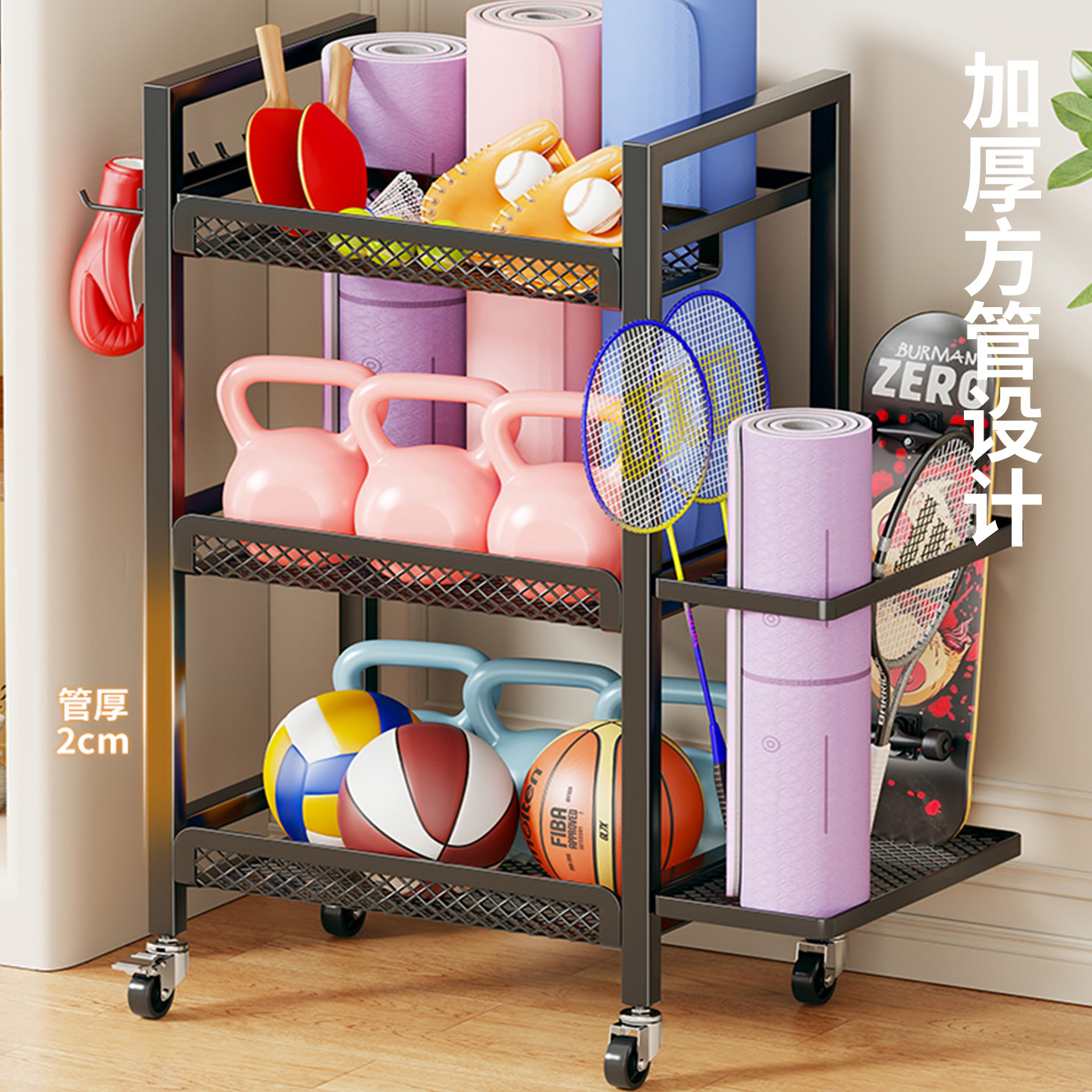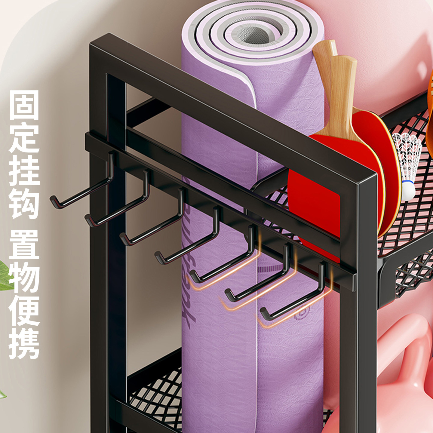 健身器材收纳架家用大容量多层运动工具储物筐瑜伽垫泡沫滚轴架子