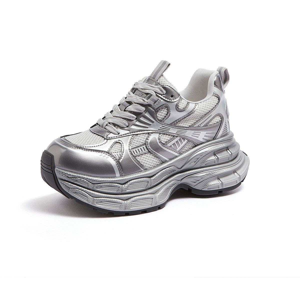 厚底老爹鞋女2025女款新款秋冬保暖加绒女鞋银色内增高休闲运动鞋