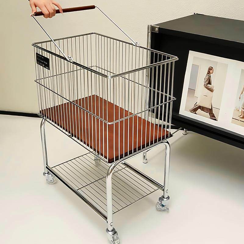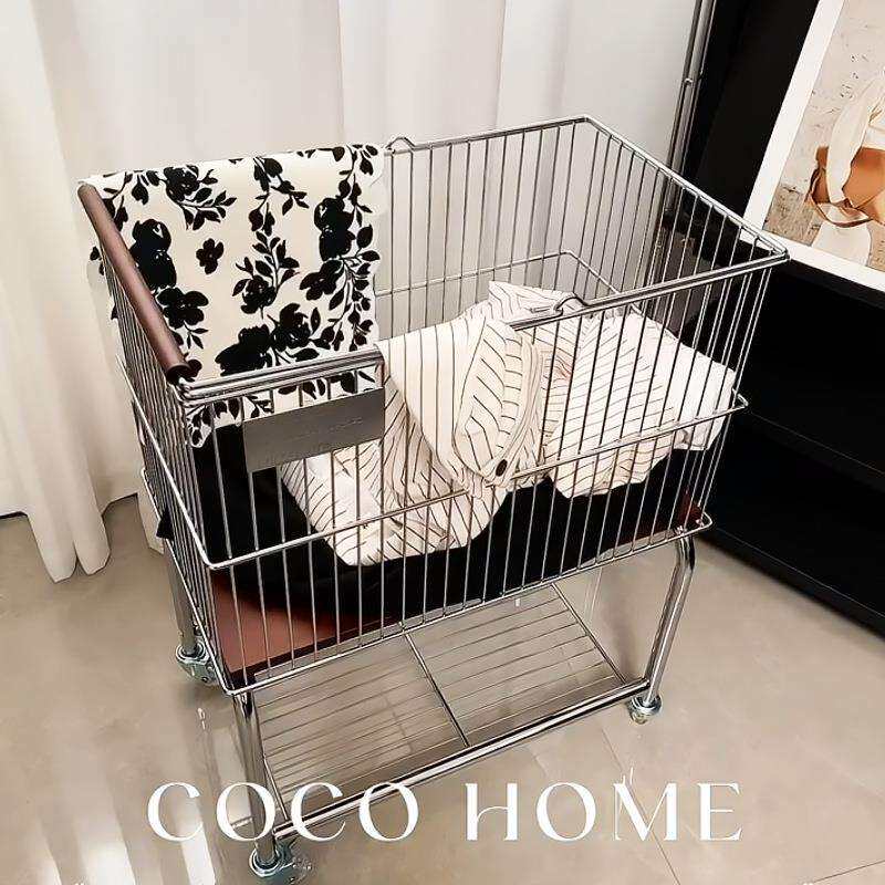 中古风脏衣篓可移动家用卫生间浴室高颜值脏衣篮衣服小推车置物架