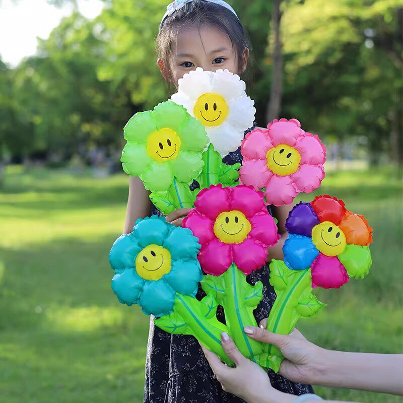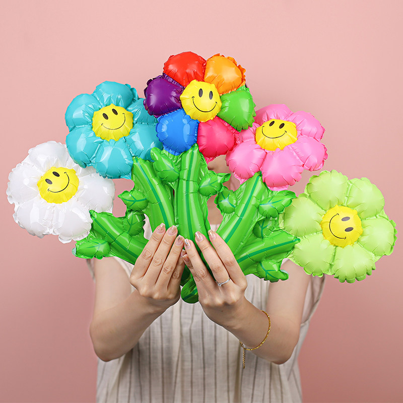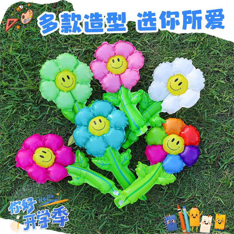 开学季仪式感气球装饰小礼品彩色笑脸雏菊手持气球幼儿园奖励品