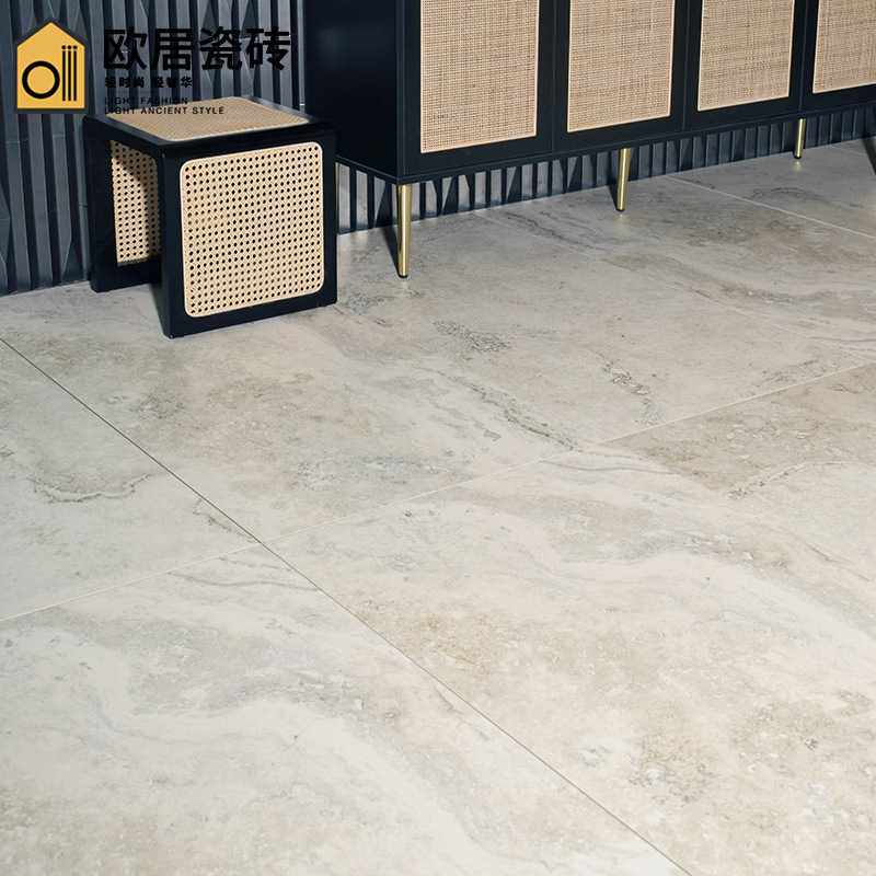 法式古堡风莱姆石仿古砖600x1200客厅防滑地砖酒店工装复古瓷砖