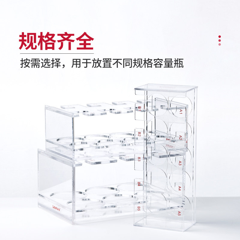 Labshark有机玻璃容量瓶架塑料带标识亚克力有机分液瓶架4孔6孔8孔10孔12孔定量瓶架加厚有机玻璃定容瓶架