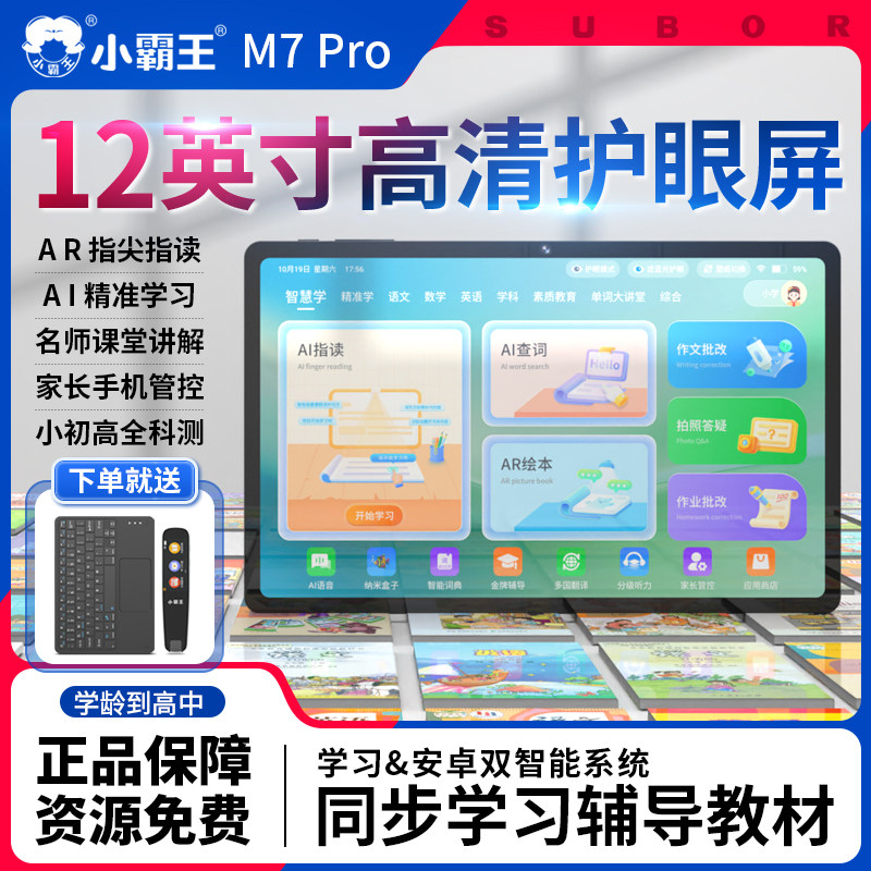 官方旗舰店小霸王M7pro学习平板新款12寸大屏AI智能全科英语神器点读机学习机小学初中高中通用儿童专用