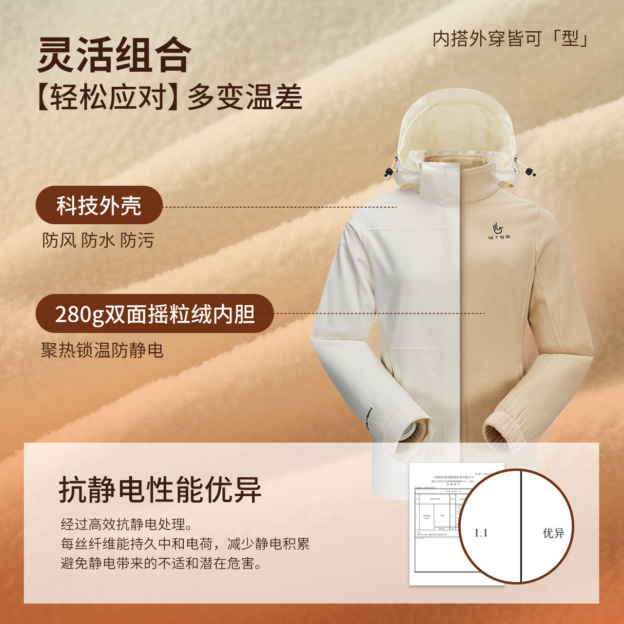 【林系列】美特斯邦威冲锋衣女2025春季新款三合一户外登山服外套