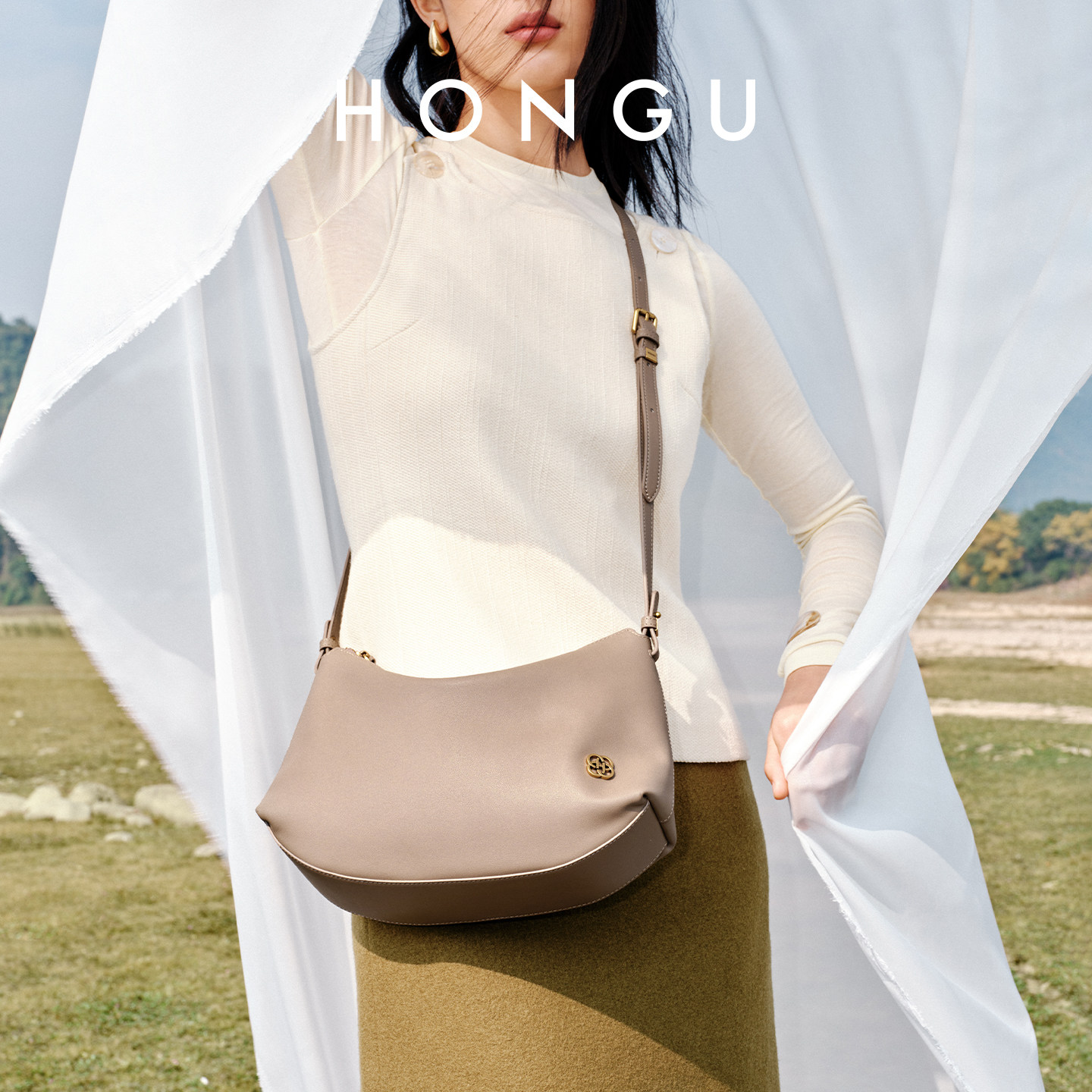 红谷包包2026新款质感真皮单肩腋下包通勤高级感斜挎包送礼女士包