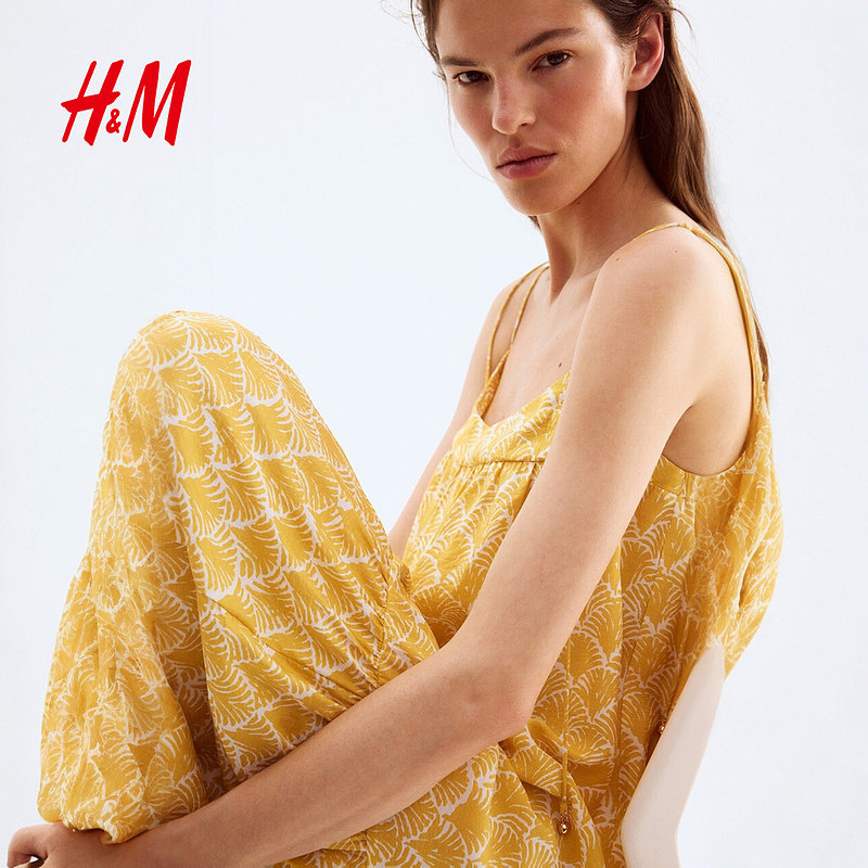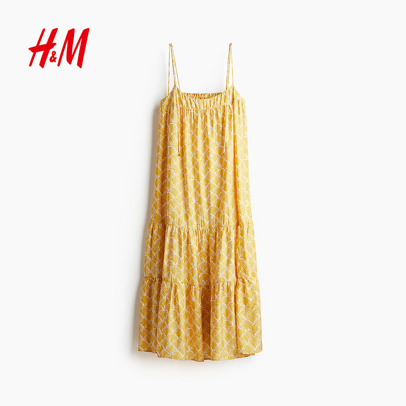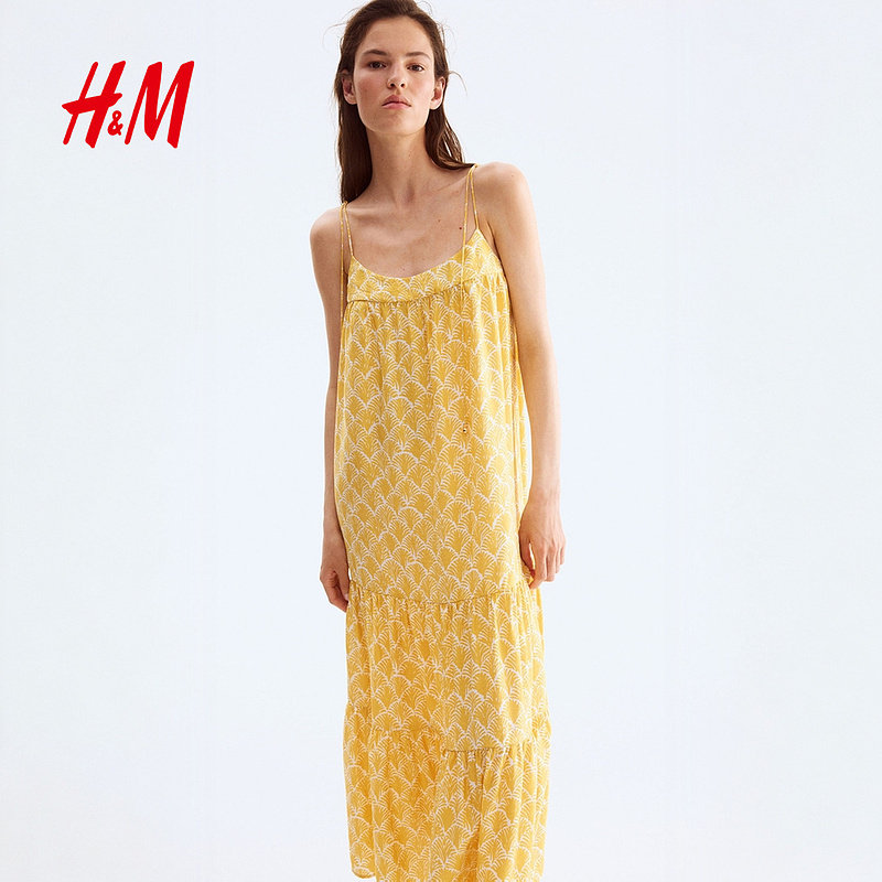 HM女装连衣裙夏季波嬉风印花宽松吊带长裙海岛风大摆裙1290424
