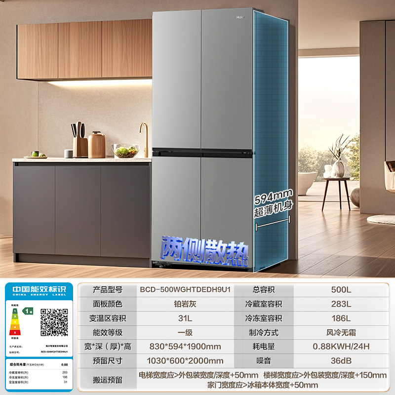 594mm超薄机身,黑金净化保鲜,WiFi智控