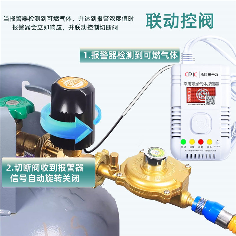 燃气报警器家用厨房自动切断阀3C认证液化气煤气泄漏气体自动断气