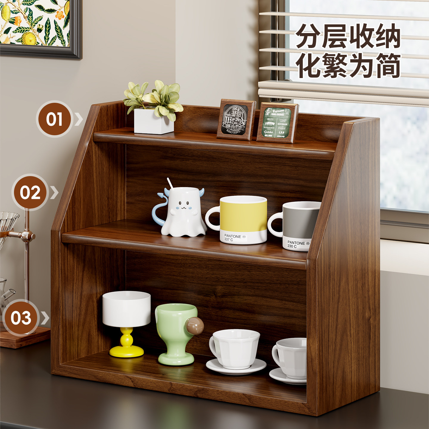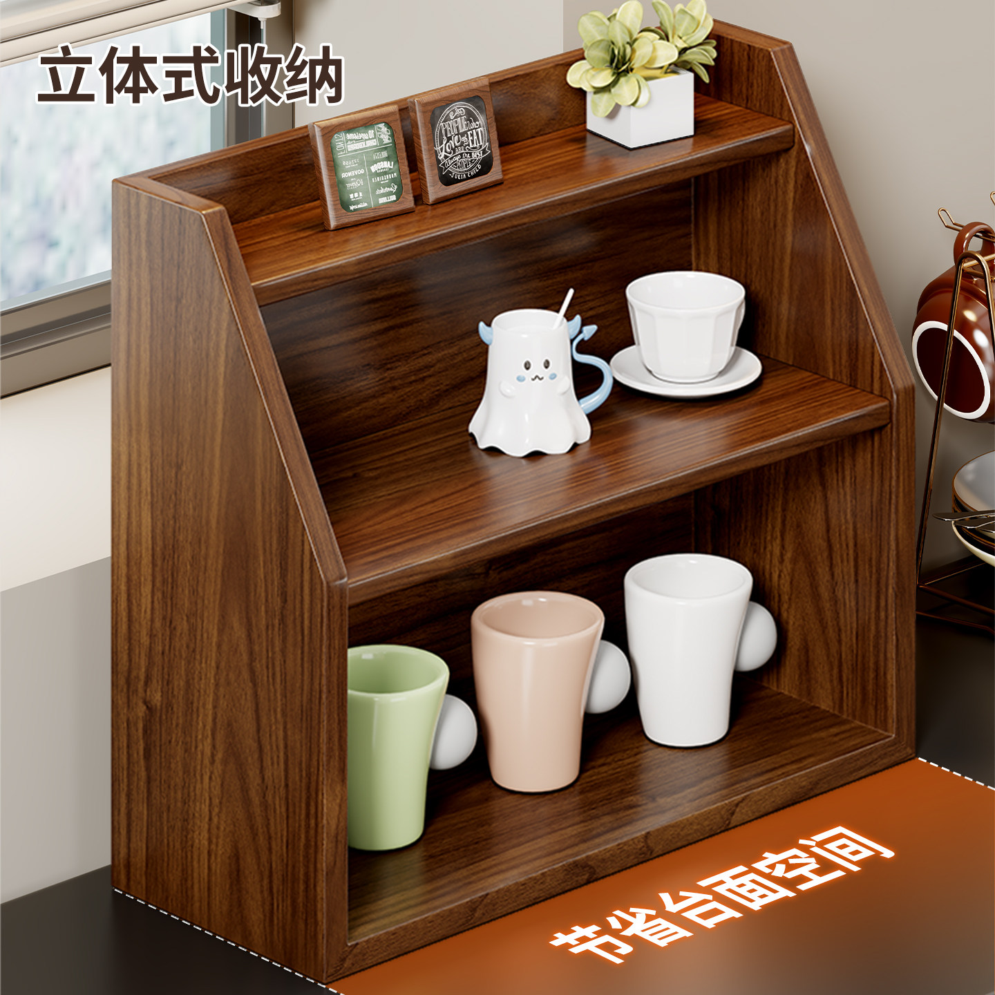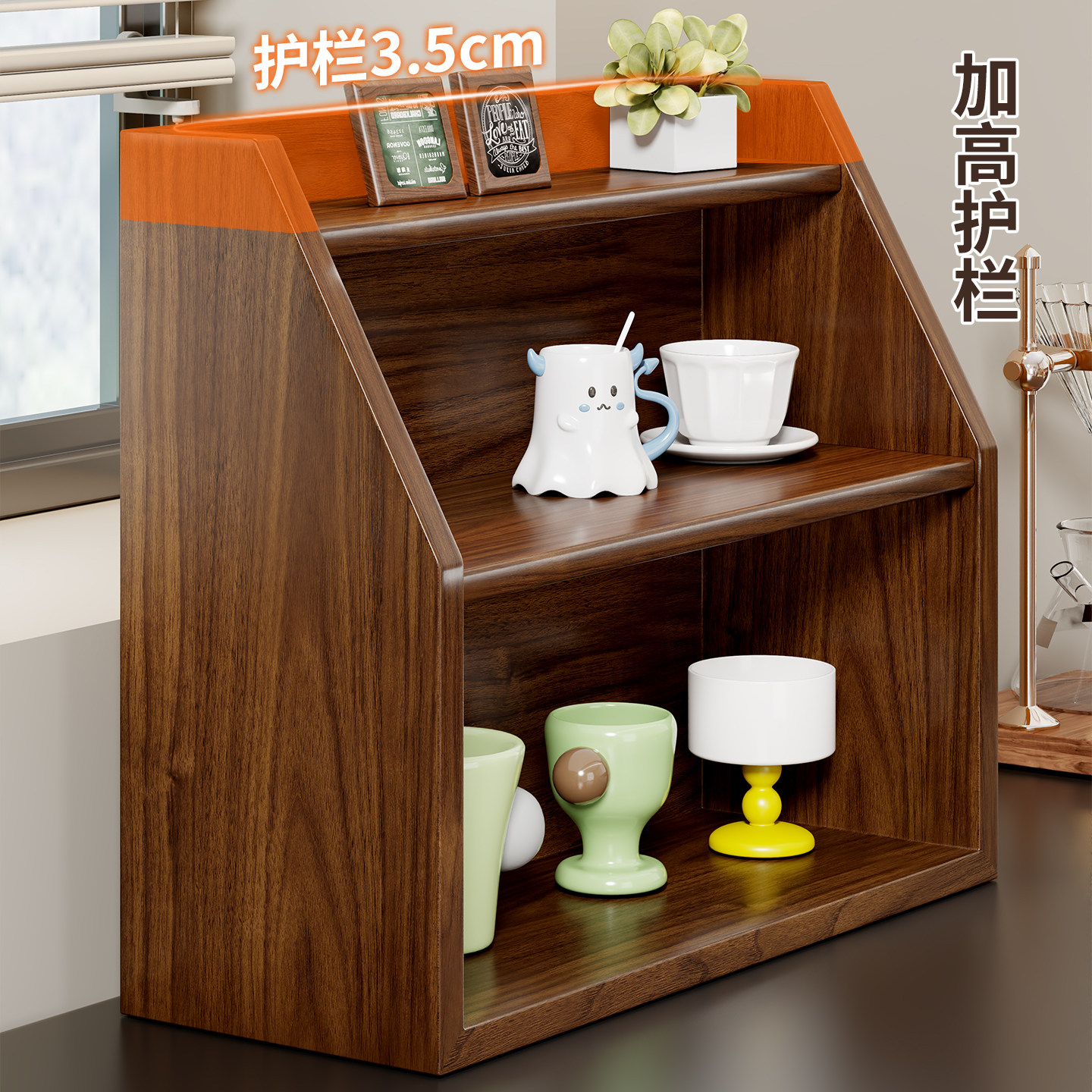 实木杯架餐桌面开放式茶杯具水杯架台面多层立体式咖啡茶具放置架