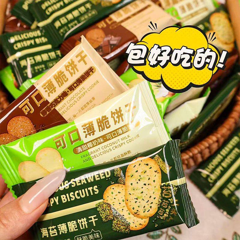 椰奶巧克力味薄脆饼干整箱散装大糖粒薄饼小包装休闲零食茶点酥脆