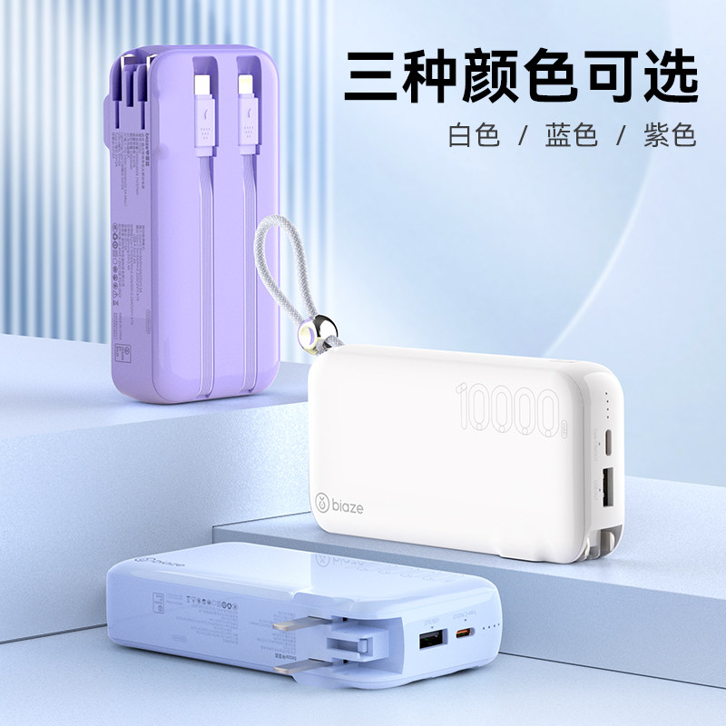 毕亚兹充电宝大容量三合一带插头自带线20000毫安2025新款便携快充移动电源适用苹果17专用可上飞机3C认证