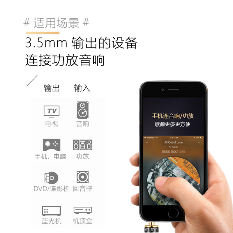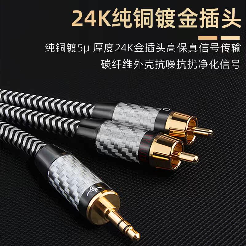 杨阳一分二rca音频线发烧单晶铜镀银3.5转双莲花手机音响箱连接线