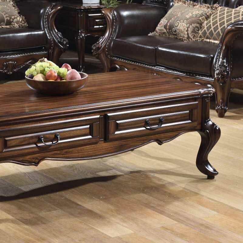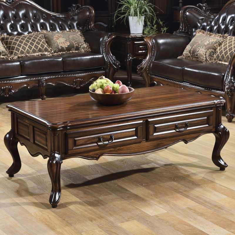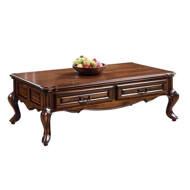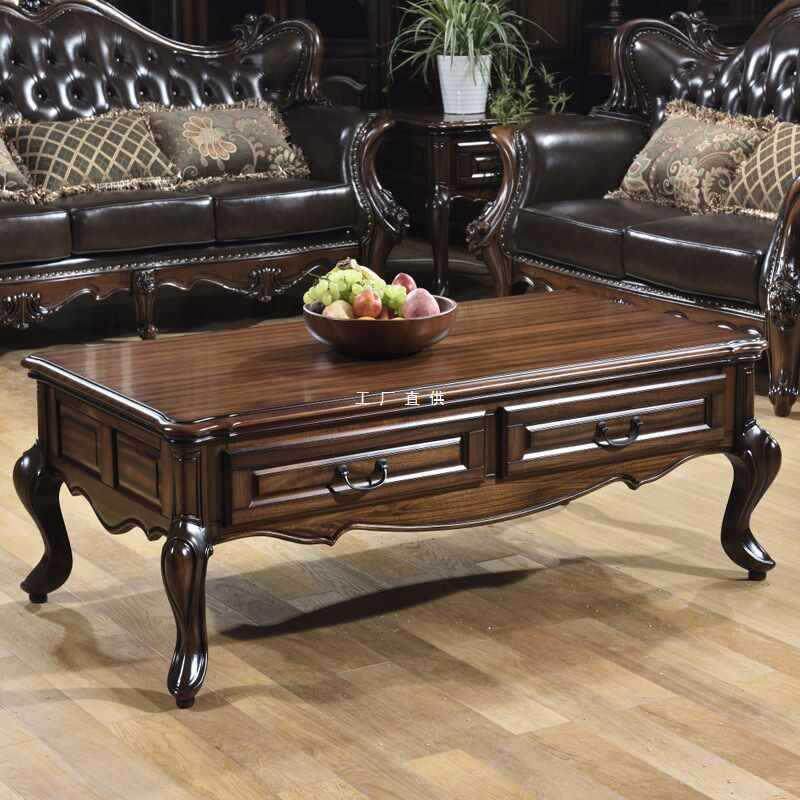 美式茶几全实木小户型家具乡村欧式古典客厅长方形黑胡桃木茶几