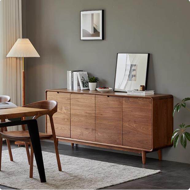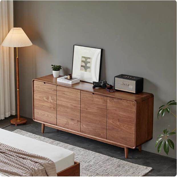 北欧黑胡桃木全实木餐边柜现代简约客厅玄关储物柜樱桃木卧室家具