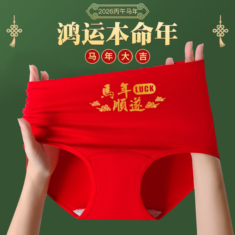 本命年高腰纯棉内裤女裆抗菌收腹女士三角裤新年加长棉质马年舒适