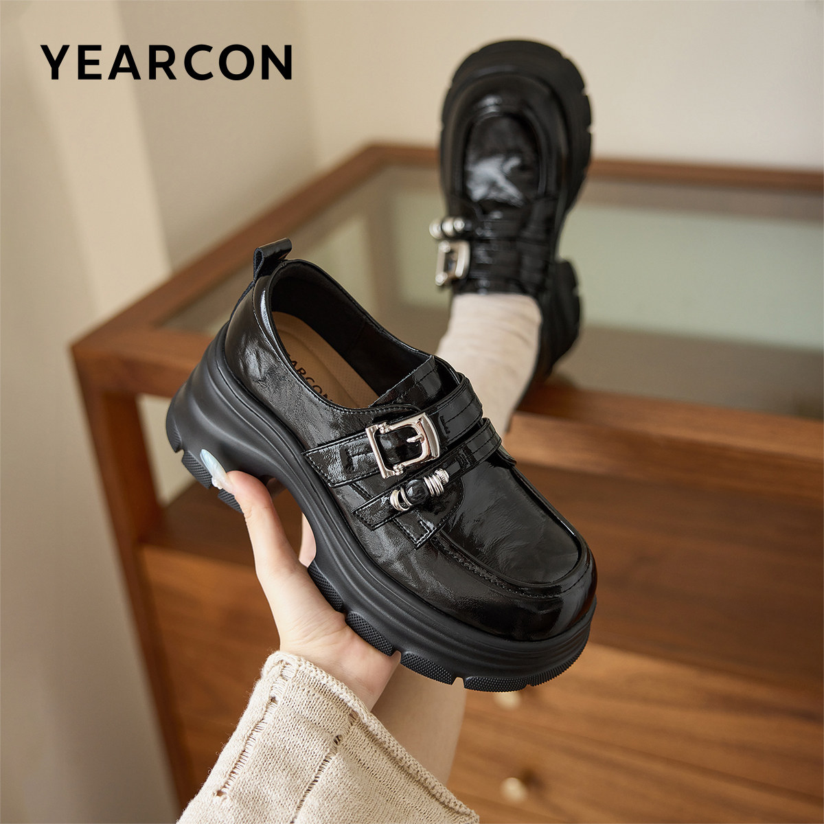 意尔康女鞋2026春季新款粗跟厚底小皮鞋配裙子单鞋英伦学院乐福鞋