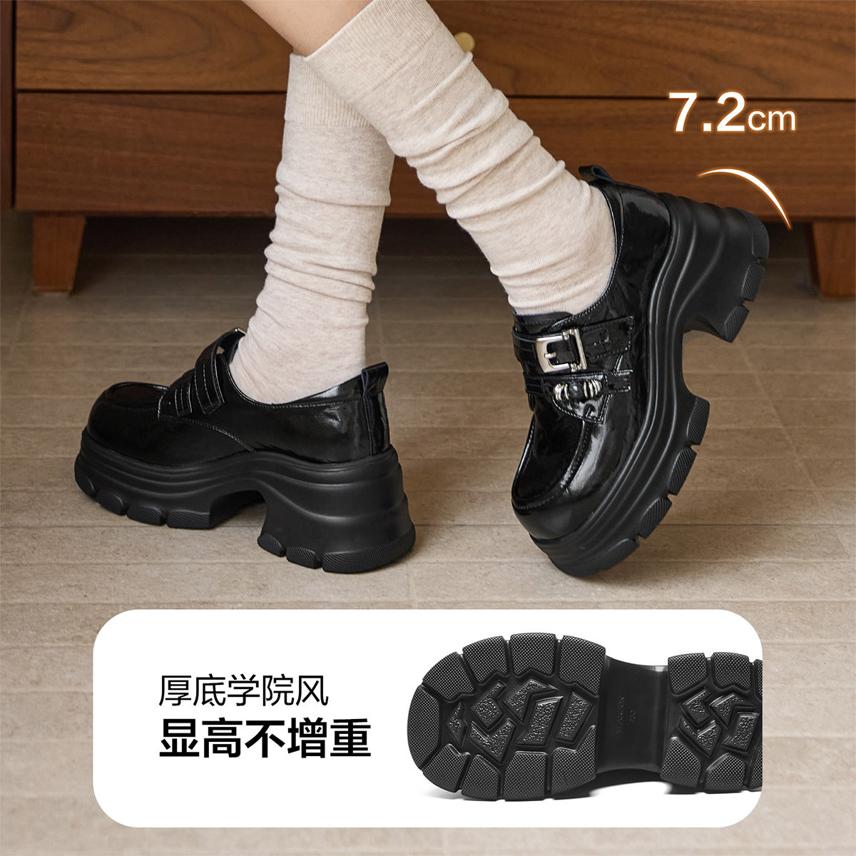 欧货真皮厚底小皮鞋女英伦风圆头加绒德比鞋小个子增高乐福鞋单鞋