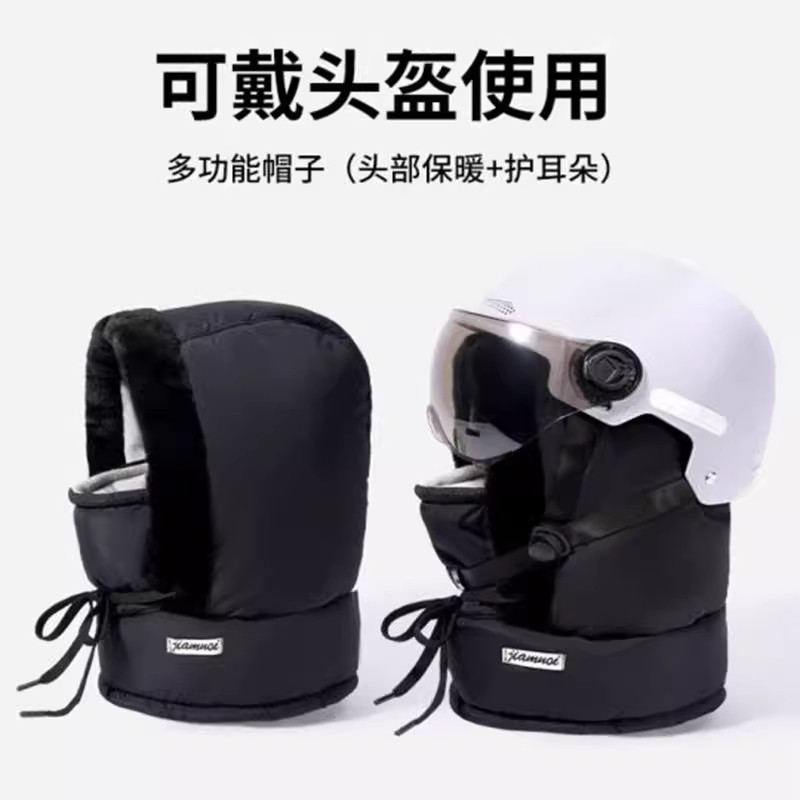 羽绒雷锋帽女秋冬季围脖一体加厚保暖防寒头套面罩骑车防风帽子