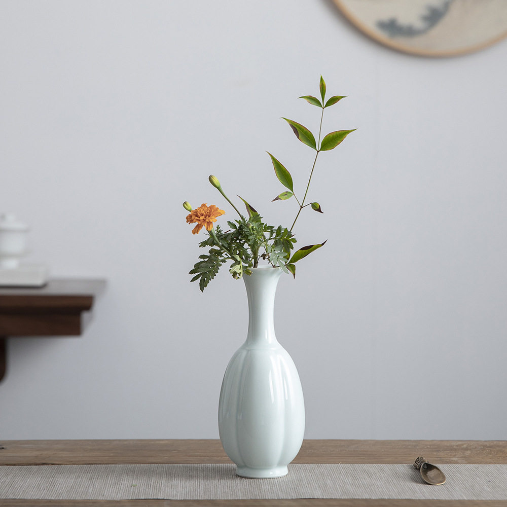 景德镇文艺创意影青复古禅意摆件清新雅致陶瓷迷你花瓶插花器