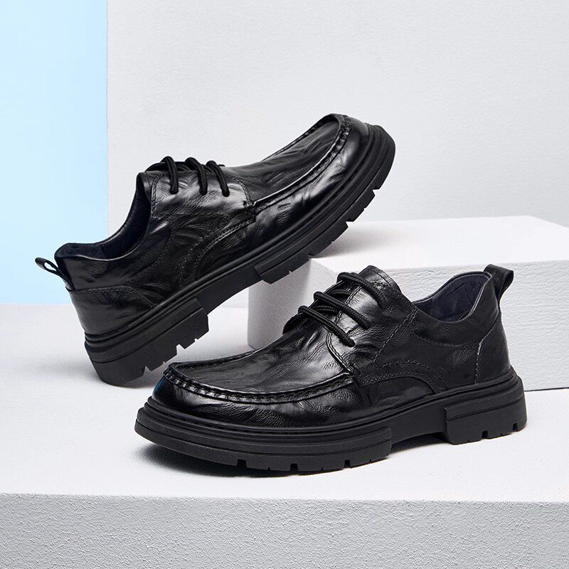 【小牛皮】青润chioryn袋鼠鞋男黑色真皮增高厚底休闲通勤风皮鞋